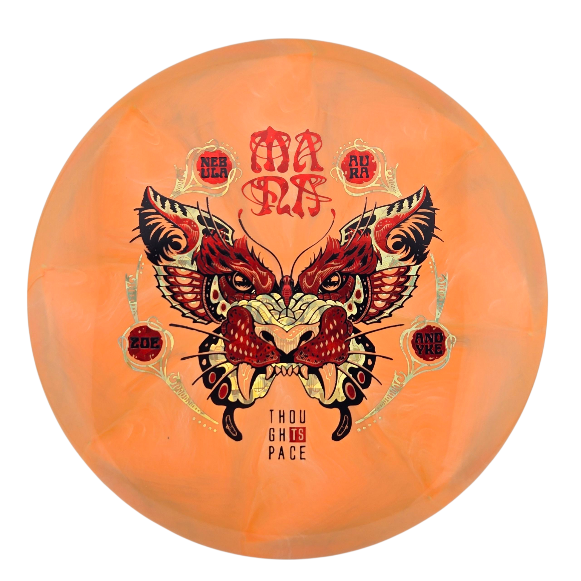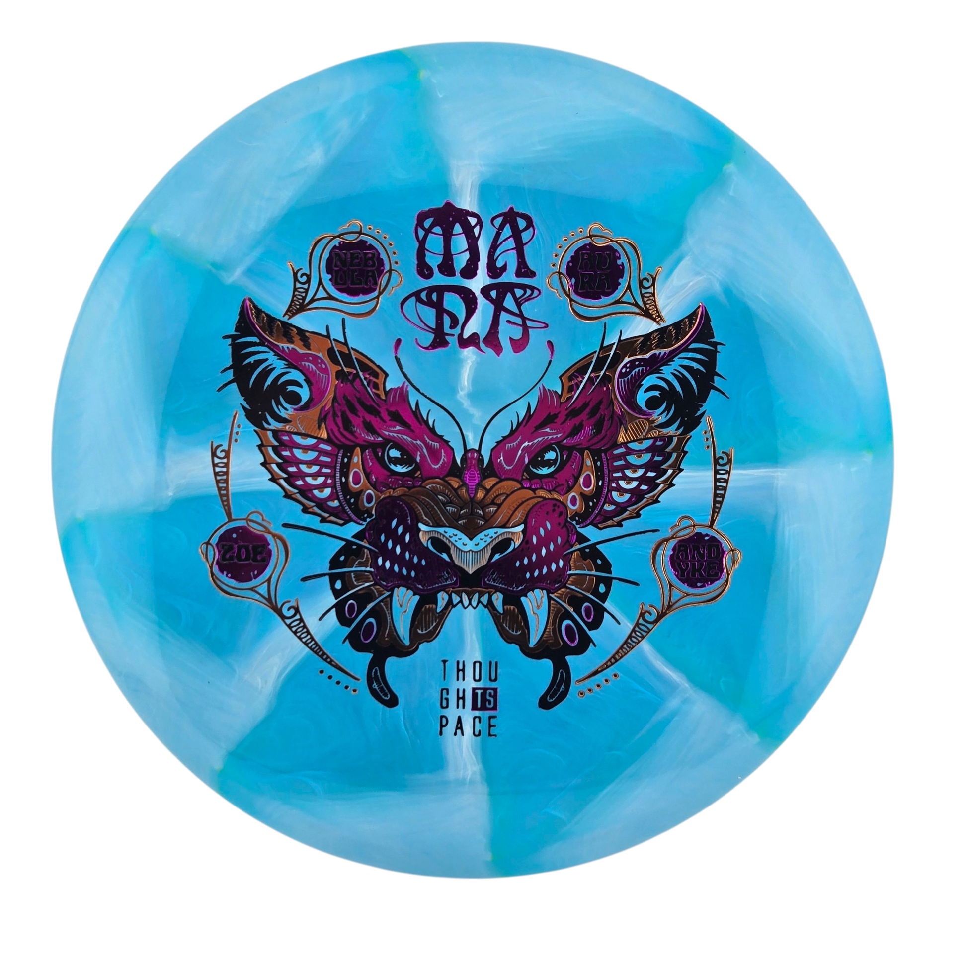 2025 Zoe AnDyke Nebula Aura Mana – The Mana is a new mold from Thought Space Athletics that is perfect for understable midrange shots. At low speeds it will fly extremely straight. While at high speeds it will be great for hyzerflip to turnover shots. The Nebula Aura plastic is both beautiful and has tons of grip. Help support Zoe AnDyke with the Nebula Aura Mana today!