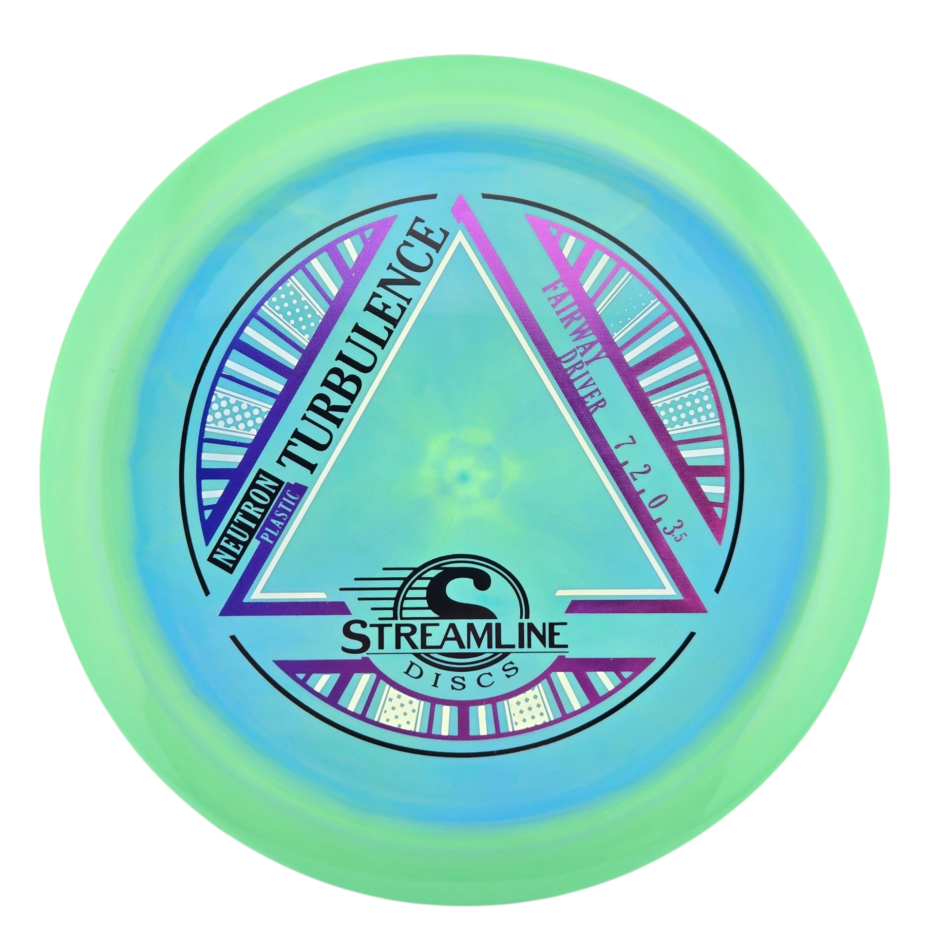 Introducing the newest addition to Streamline Discs, the Neutron Turbulence! Debuting with flight numbers of 7 | 2 | 0 | 3.5, this disc is the newest brainchild from MVP’s R&D department. What if you could take the reduced glide and comfort that the concave top of the Range provides, but transport that into a fairway driver? The result of that mad science is here in the Turbulence! Designed with a purposefully concave flight plate, the Turbulence feels amazing in the hand - resulting in extremely clean and torque-resistant releases for both forehand and backhand throws. The unique design also leads itself to less glide, increased nose angle forgiveness for spike hyzers, and a muted skip - resulting in an extremely comfortable fairway driver that excels in all aspects of controlled fairway driver shots. This overstable driver is quickly becoming a favorite of Team MVP, and we expect that trend to continue for GYROnauts around the world. If you’re looking for dependable overstable control from your fairway driver, look no further than the Turbulence. There's nothing quite like the unique aspects the Turbulence can bring to your game, so grab one from your favorite local or online MVP dealer and see how the Turbulence can add even more consistency to your bag!